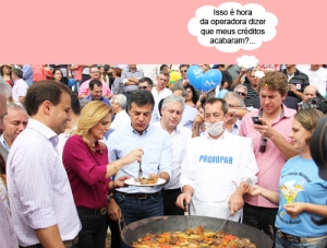 A 23ª Festa Nacional do Carneiro no Buraco já se foi há mais de uma semana, mas segue rendendo balãozinho. Pudera. Na hora da retirada do tacho “número um”, enquanto o governador Beto Richa e a prefeita Regina Dubay dão a tradicional “beliscadinha”, o deputado federal Zeca Dirceu faz foto do celular. Ou será que estava recebendo aquelas mensagens da operadora que sempre vêm nas horas impróprias?...