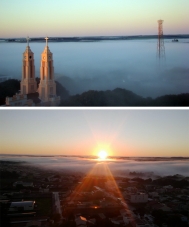 Depois de um domingão chuvoso, nada como uma bela manhã de segunda-feira pra começar bem a semana. A neblina deu um toque especial à Catedral São José e ao nascer do sol. Em tempo: a segunda foto é do vereador Luiz Alfredo. E viva a natureza (e as câmeras digitais)!...