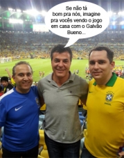 O governador Beto Richa também foi ao Maracanã ver a final da Copa das Confederações. Na foto ele aparece entre o chefe de gabinete da prefeitura de Goioerê, Elder Alves, e Nato Costa. Atenção! Não vá se confundir. Nato, com a camisa azul do Brasil, é irmão-gêmeo do prefeito Beto Costa (Goioerê), que também estava por lá, mas não aparece no clic. Viu só, como às vezes as aparências enganam?...