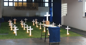 Um grupo de alunos da Fecilcam fez nesta segunda-feira o enterro simbólico da autonomia universitária da Unespar.