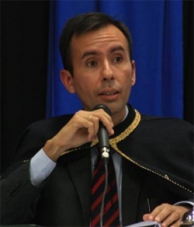 Jair Elias dos Santos Jr, historiador e presidente da Academia Mourãoense de Letras, ao discursar na solenidade que entregou a comenda Vida & Liberdade ao ex-prefeito José Pochapski; nesta quarta-feira.