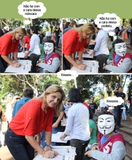 Os cliques são de sábado passado, ainda durante o protesto contra a PEC 37, que limita o pode de investigação do Ministério Público. A prefeita Regina Dubay assinou o documento que pede aos deputados federais que votem contra a proposta. E teve até pose junto a um misterioso mascarado...