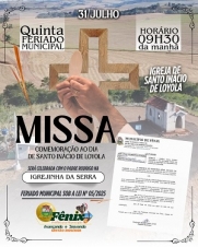 Tem feriado novo nesta quinta-feira em Fênix. Será para comemorar o Dia de Santo Inácio de Loyola (31 de julho). A data será marcada com uma missa celebrada às 9h30 na igreja Santo Inácio de Loyola, a “Igrejinha da Serra”, que é ponto de visitação do Caminho Iniciático de Santiago de Compostela. Tudo previsto em lei sancionada em março pelo prefeito Junior Molina