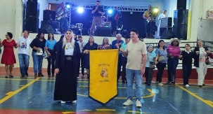 Farol – Grupos de várias cidades participaram, domingo, do baile regional da melhor idade. O prefeito Oclecio Meneses e a primeira-dama Eliane apresentaram a bandeira da Melhor Idade de Farol.