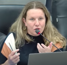 Camila Corchak, secretária de Saúde de Campo Mourão, ao participar de audiência pública para prestação de contas do 2º quadrimestre, na Câmara; nesta segunda-feira.