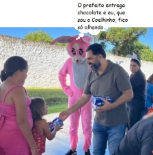 O clic é de Campina da Lagoa, onde a prefeitura entregou, semana passada, chocolates para as crianças da rede municipal de ensino. O prefeito Padre Gianny ajudou na entrega, que também teve a presença do Coelhinho...
