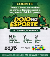 A Associação Dojo faz neste domingo (10h), o lançamento oficial do projeto Dojo no Esporte, em Campo Mourão. O evento reúne alunos, familiares, equipe e comunidade em uma apresentação formal da iniciativa, no ginásio da Vila Urupês. Executado com recursos do Ministério do Esporte, via emenda do deputado federal Zeca Dirceu, o projeto oferece aulas gratuitas de caratê e futsal em diversos núcleos da cidade, beneficiando 500 alunos, com 250 vagas em cada modalidade.