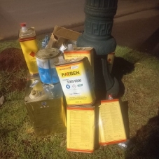 Pode embalagens de tíner descartadas no poste  republicano no canteiro em frente ao DER?