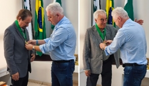 O prefeito de Campo Mourão, Douglas Fabrício, entregou nesta quinta-feira a Comenda da Ordem do Mérito Mourãoense ao advogado Iran Roberto Brzezinski e ao médico Diógenes Teodoro de Oliveira.  Os dois estão entre as 20 personalizadas agraciadas com a honraria no ano passado, mas não puderam comparecer ao evento oficial da entrega.