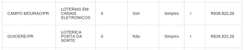 Ninguém acertou as seis dezenas sorteadas nesta quarta-feira pela Mega-Sena. Assim, ninguém ficou com os R$ 40 milhões e o prêmio deve chegar a R$ 50 milhões no próximo sorteio. Na região, duas apostas passaram raspando. Acertaram cinco dos seis números. Uma feita em Campo Mourão e outra em Goioerê. Cada uma leva para casa R$ 38,8 mil. Ao todo, 97 apostas fizeram a quina.