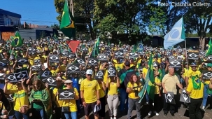 A frente do Tiro de Guerra de Campo Mourão voltou a ficar lotada na tarde do feriado desta terça-feira. Foi mais uma manifestação contra o resultado da eleiçao presidencial. Várias pessoas usaram cartazes com a bandeira nacional em preto e branco e a frase "Brazil was stolen" (Brasil foi roubado). Nas redes sociais, os manifestantes dizem que o ato é "pró-Brasil", contra a censura, contra a "ditadura do Judiciário" e por "eleições transparentes".