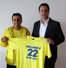 Dos prefeitos da região, o que parece mais animado na campanha presidencial do segundo turno é Betinho Lima, de Goioerê. Literalmente, vestiu a camisa de Jair Bolsonaro. Nesta segunda-feira foi a Curitiba e entregou ao governador Ratinho Jr e ao vice Darci Piana camisetas com a frase "Goioerê é 22 Bolsonaro". Nas redes sociais, Lima parece em "adesivaço" e até de bicicleta com a bandeira do candidato do PL.
