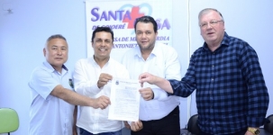 O prefeito de Goioerê, Betinho Lima, assinou nesta quinta-feira, convênio de adesão ao programa “Opera Paraná”, da Secretaria de Estado da Saúde. O objetivo é diminuir a fila de cirurgias eletivas gerada pela pandemia. O convênio é através da Santa Casa, que vai receber R$ 360 mil. Os prefeitos Akio Abe (Quarto Centenário) e Ricardo Radomski (Mamborê) também participaram.
