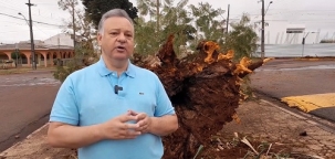 Chuva com ventos fortes, no fim de semana, derrubou árvore em Ubiratã. O prefeito Fábio D"Alécio aprovou para fazer um alerta. Disse que a maioria das árvores da cidade está com a vida útil vencida e que, por isso, cenas com essa são cada vez mais frequentes. "Especialista nos orientou a substituir as árvores gradativamente", destacou D"Alécio, ao pedir compreensão dos moradores. "Queremos fazer Ubiratã bela e também segura".