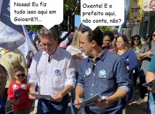 O clic é do fim de semana, em Goioerê, onde o deputado estadual Márcio Nunes fez campanha pela reeleição. Entre as ações, uma caminhada pelo centro da cidade ao lado do prefeito Betinho Lima. Repare que Márcio parece impressionado com o próprio material de campanha...