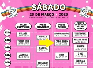 Saiu a programação oficial do Lollapalooza, o festival de música que será realizado dias 24, 25 e 26 deste mês, em São Paulo. Serão mais de 70 atrações em quatro palcos. E tem gente de Campo Mourão confirmada. A cantora Carol Biazin vai se apresentar no sábado, dia 25, a partir das 13h05. Ela cantará no Palco Adidas. O ingresso para o sábado (inteira) custa R$ 1.560.