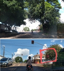 "Essa é a rua Panambi, esquina com a perimetral. A prefeitura precisa fazer uma poda nas árvores, pois estão atrapalhando a visibilidade do semáforo para os motoristas que vão do Cidade Alta sentido centro. Inclusive, dá pra notar na segunda foto que tem uma árvore bem na frente do porta focos que fica mais embaixo".