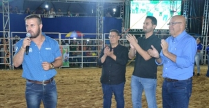Prefeitos - O prefeito Cássio Zanuto também recebeu na abertura cinco prefeitos da região - Joel Buscariol (Boa Esperança), Oclecio Meneses (Farol), Betinho Lima (Goioerê), Ismael Dezanoski (Janiópolis) e Akio Abe (Quarto Centenário), além de Edimar Santos, de Santa Cecília do Pavão.