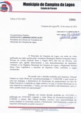 O prefeito de Campina da Lagoa, Milton Luiz Alves, enviou ofício à Câmara sobre o vídeo das três vereadoras.