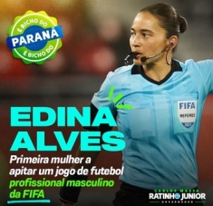 A árbitra Edna Alves, de Goioerê, é "Bicho do Paraná". A afirmação é do governador Ratinho Jr, em postagem feita nesta sexta-feira em redes sociais. O texto cita várias façanhas da goioerense, como, por exemplo, ter sido "eleita a quarta melhor árbitra do mundo". "Que Deus te abençoe e que você continue tendo muito sucesso. Parabéns!", conclui o governador.