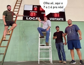 O clic é de Barbosa Ferraz, onde o prefeito Edenilson Miliossi fez pose para a foto para mostrar o placar eletrônico que foi instalado no ginásio Arnaldo Coneglian. "tão aguardado placar eletrônico está oficialmente instalado!", comemorou nas redes sociais. Agora, cá pra nós: o "7 a 1" foi coincidência ou não?...