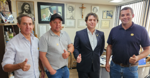 Farol - Os vereadores Jorge Guilherme, Miltão da Ambulância e Ademir Lage estiveram com o deputado Anibelli Neto. Em pauta, a liberaão de R% 100 mil para aquisição de calcáreo para produtores rurais.