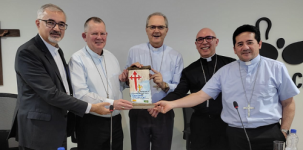 O bispo de Campo Mourão, d. Bruno Versari, participou nesta quarta-feira, em Brasília, de reunião com os bispos presidentes das Comissões Episcopais de Pastoral. Foi na CNBB. Aproveitou para entregar o pergaminho do primeiro Caminho Iniciático de São Tiago de Compostela, que fica na diocese de Campo Mourão. D. Bruno falou da importância do projeto, que destaca a região no turismo religioso sustentável.