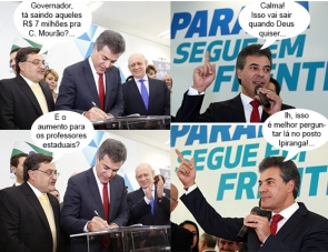 Os cliques são desta terça-feira, quando o governador Beto Richa recebeu cerca de 180 prefeitos para autorizar obras de saneamento, liberar recursos para a saúde, obras urbanas e compra de equipamentos rodoviários. No mesmo ato, oito municípios assinaram financiamentos. As ações envolvem R$ 120 milhões. Só não tinha nenhum prefeitura da região, não. Ah, fica pra próxima...