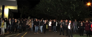 Que friozinho, que nada! Professores e funcionários da Unespar e de escolas estaduais participaram de manifestação nesta segunda-feira à noite, na Unespar.