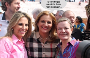 Olha só quem se encontrou neste domingo na Festa do Carneiro no Buraco. A senadora Gleisi Hoffmann e a deputada federal Cida Borghetti. No meio, a prefeita Regina Dubay. O detalhe é que Gleisi é candidata a governadora e, Cida, a vice-governadora na chapa de Beto Richa. Viu só, o que a política separa, o carneiro úne...