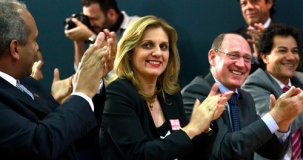 Regina Dubay (PR), prefeita de Campo Mourão, ao contar que era a única prefeita do Paraná presente ao evento em Brasília que anunciou a aprovação do curso de medicina para 39 cidades, sendo quatro paranaenses; em entrevista à TV Caiuá (Canal 54), nesta quinta-feira, por telefone.