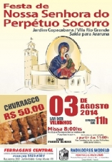 A quase paróquia Nossa Senhora do Perpétuo Socorro, na vila Rio Grande, promove churrasco neste domingo. Será nas dependências do Lar dos Velhinhos. O churrasco está sendo vendido a R$ 50. De acordo com o padre Carlos Alberto, toda renda será revertida em melhorias das estruturas físicas da igreja.
