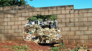 Agora postou no Facebook mais de 80 fotos sobre o estado de abandono do "campo santo". A prefeitura informou que está providenciando uma arrumada no local. Sobre o muro quebrado, sem problemas, afinal, quem tá dentro não pode sair e quem tá fora não quer entrar...
