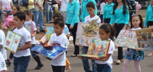 A literatura brasileira foi o tema principal do desfile de aniversário de Campo Mourão, realizado nesta quinta-feira. Todas as escolas e centros de educação infantil homenagearam escritores brasileiros, com destaque para Vinícius de Moraes, já que estamos no centenário de seu nascimento. A temática foi uma prévia para a 1ª Bienal do Livro, que o município realiza este mês.