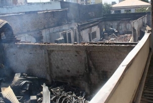 Vista parcial de como ficaram zs lojas Colombo e o depósito das lojas Salfer , no centro de Campo Mourão, após o incêndio iniciado na noite desta quinta-feira. O Corpo de Bombeiros controlou o fogo por volta das 3 horas da madrugada e voltou ao local pela manhã para conter possíveis novos focos de incêndio. A destruição foi total, mas ninguém ficou ferido.