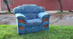 Sofá velho abandonado no canteiro central da av. Guilherme de Paula Xavier. Marlon