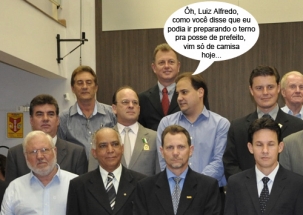 O clic é desta terça-feira, na Câmara, que fez sessão solene para entregar moções a entidades ligadas à contabilidade. Na hora da "foto oficial", o vice-prefeito Rodrigo Salvadori ficou lado a lado com o vereador Luiz Alfredo. Na semana passada, o vereador disse que vê motivos para o vice ir preparando o terno para a posse como prefeito. Portanto, digamos que Salvadori estava aí só tirando alguma dúvida...