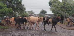 Olha aí outra foto, de outro local e outro horário, de um problema de Campina da Lagoa já mostrado pela Boca Santa. Bois e vacas andam à vontade pelas ruas da cidade. Pode?