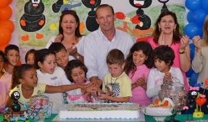 O Dia das Crianças em Moreira Sales teve entrega de bolos, doces e salgados nas escolas e creches municipais. No total foram 146 quilos de bolos. O prefeito Luiz Volpato, acompanhado da secretária Eugênia Viotto (Educação), visitou as escolas e se fez presente na festança da criançada. Agora, cá pra nós: é impressão ou as crianças estão se pegando na frente do bolo enquanto o prefeito faz pose pro clic?...