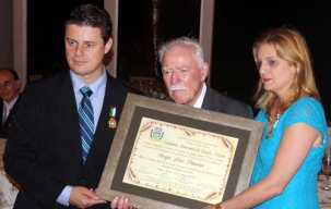 O ex-vice-presidente da Coamo, Sérgio Panceri, recebeu nesta sexta-feira o título de Cidadão Honorário de Campo Mourão. A sessão solene foi realizada no Recanto do Criador. A homenagem foi uma iniciativa do vereador Luiz Alfredo. Panceri recebeu o título das mãos da prefeita Regina Dubay e do presidente da Câmara, Pedrinho Nespolo. Agora, cá pra nós: vocês já viram políticos tão sérios assim na hora da entrega de um título?...