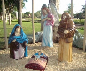 Olha aí o presépio que está sendo montado na praça São José. Ele é feito em fibra de vidro, em tamanho natural, e custou R$ 23 mil. Há mais personagens que não aparecem no clic. O presépio será iluminado, com as luzes sendo acesas às 21h desta sexta-feira.