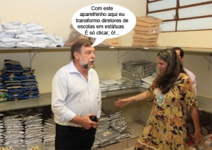 O clic é de sexta-feira, em Campina da Lagoa, onde o vice-governador Flávio Arns visitou o colégio estadual que leva o nome da cidade. Ao lado a diretora Lorecy de Matos Curci, ele conferiu até o estoque da merenda. Arns é o secretário de Estado da Educação. E fique tranquilo: logo após a foto Arns "liberou" a diretora da posição de "estátua"...