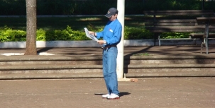 "Mesmo com sol forte, cidadão lê jornal, em pé, no meio da praça São José, no centro de Campo Mourão".