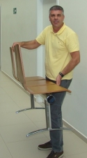 E só não ficou em pé o tempo todo porque o vereador Edílson Martins buscou um jogo de cadeiras.