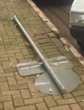 "Placa de trânsito aparece derrubada na rua São Paulo, quase esquina com a av. Capitão Índio Bandeira. Os vândalos aprontara mais uma!"