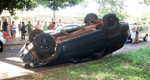 Em menos de um mês, três carros capotaram em acidentes no centro de Campo Mourão. Esse aí da foto foi nesta quinta-feira, na av. Comendador Norberto Marcondes, perto do Projeto Morada. Cá pra nós: não deveria ser comum veículo ficar de rodas pra cima no perímetro urbano. É impressão ou há algo de errado no trânsito mourãoense?...