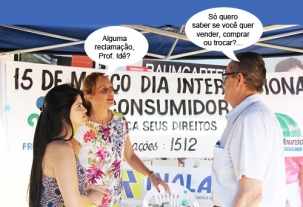 O clic é deste sábado, quando o Procon de Campo Mourão encerrou a Semana do Consumidor com orientações no calçadão. A prefeita Regina Dubay esteve por lá e o ex-vereador Prof. Idê também. Idê não está mais no "Feirão Colméia" faz tempo, mas a marca do "quer vender, comprar ou trocar?" ficou...