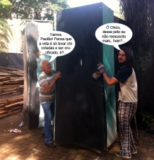 O clic foi feito 10 dias depois da apresentação do Auto da Paixão de Cristo. E olha eles aí, Chico Hernandes (Caifás) e Paulo Henrique (Jesus) ainda tendo que pegar no pesado para desmontar toda a estrutura preparada para o espetáculo. Viu só, não basta ser Jeseus (e Caifás), tem que participar de tudo...