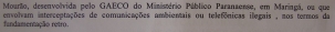 "...e no que tange às declarações prestadas pelo requerente junto à investigação alusiva ao Município de Campo Mourão, desenvolvida pelo Gaeco...", frisa o despacho (veja reprodução acima).