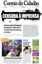 O jornal Correio do Cidadão desta terça-feira destaca a decisão da Justiça de Campo Mourão que proibiu a imprensa de Campo Mourão de divulgar o "novo vídeo" do servidor Espáia Brasa. No site Tá Sabendo, o jornalista Fernando Lorenzzo fez editorial criticando a medida. A ação inibitória foi apresentada pelo presidente da Câmara, Pedrinho Nespolo, e pelo vice-prefeito Rodrigo Salvadori. Detalhe: o vídeo proibido não existe, ou seja, a censura foi por "precaução".